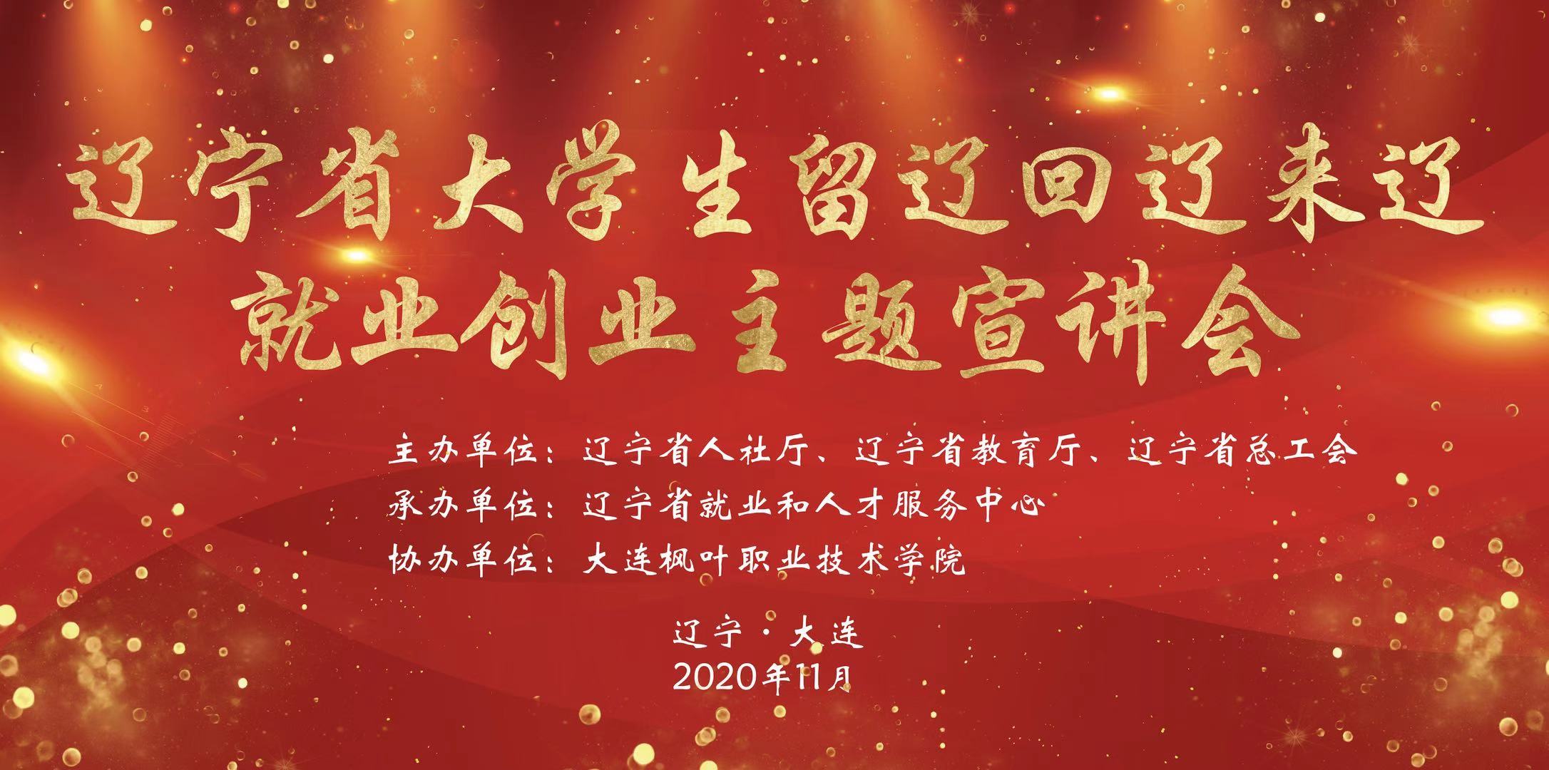 2020年11月26日下午,省人社厅、省教育厅、省总工会在我校联合开展“大学生留辽回辽来辽就业创业”主题宣传活动。
