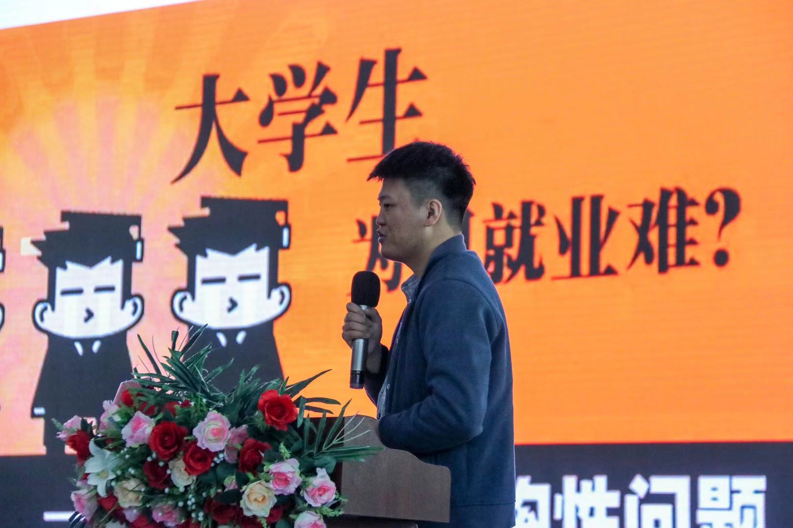 创业典型付浩分享了自己的创业契机和经历,如何从一个小小的格子铺到注册公司独立运营,如何从自己创业到带动身边同学创业。他不断学习、坚忍不拔的精神让师生们深受感动。