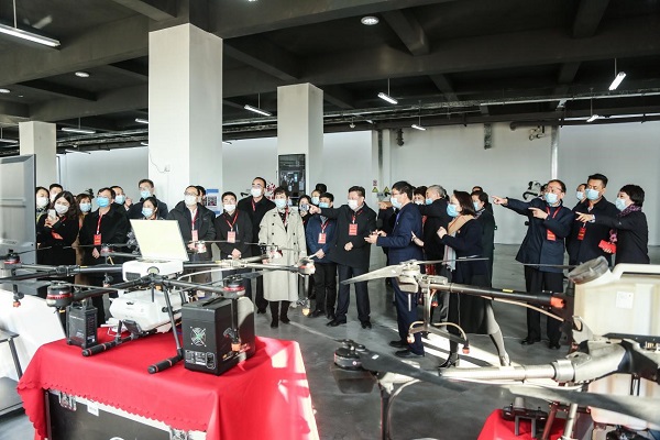 院长杨捷介绍学院无人机实训基地取得的成绩
