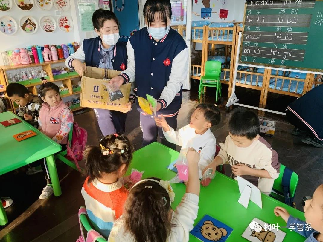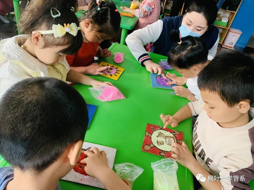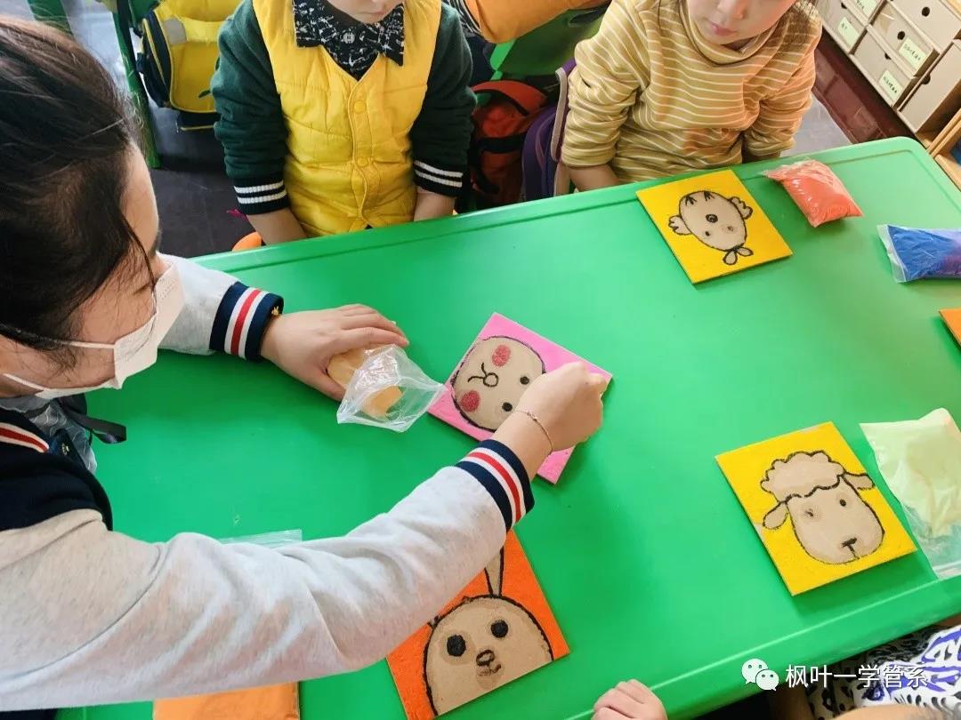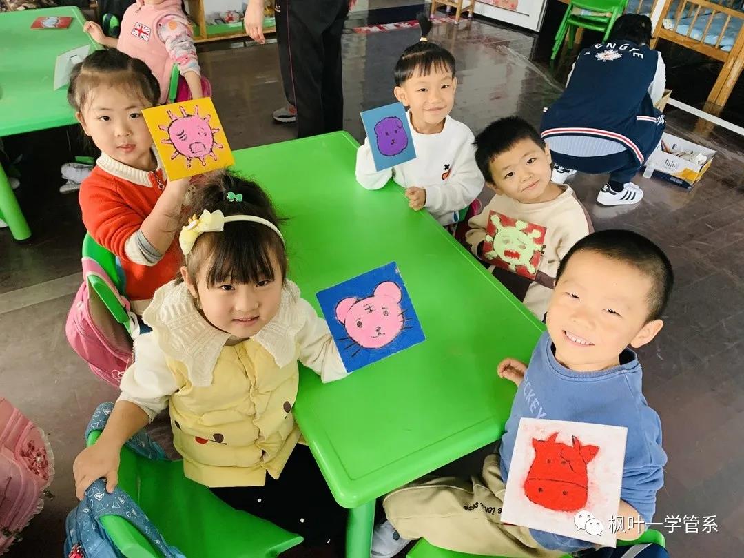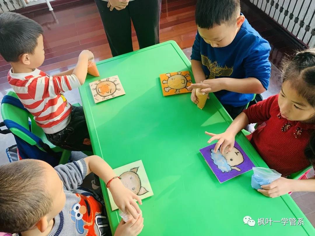 19级的小叶子们提前做好了很多有趣可爱的小动物和防疫相关图案的沙板画教具,几位小老师生动的授课内容很快吸引小朋友们的注意力,他们积极互动、抢答问题。