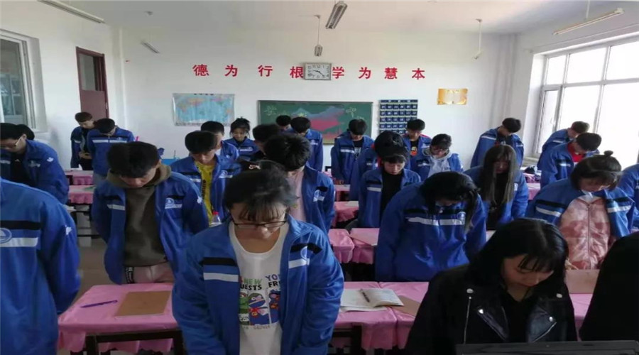 全体学生在教室肃立,静听防空警报,并默哀三分钟。每一个人都表达了自己对革命先烈的缅怀和崇高的敬意!