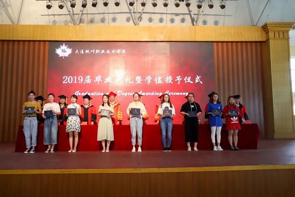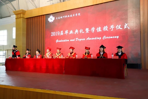 伴随着雄壮的国歌,毕业典礼在综合馆正式开始。一段视频勾起同学们对校园生活的回忆。典礼由团委学生处\保卫处处长高成林主持,学院院长杨捷,书记、副院长申秀梅,副院长解建国,副院长金晓晖,教务处处长张冬冬,财经商贸系主任林晓慧,工程技术系主任王晓琳,现代服务系系主任于庆霞,创业就业办主任张晓洁莅临典礼现场。“三载励志成才,一朝鲲鹏展翅”!院长杨捷的讲话饱含深情,纯真朴实,寄托着对毕业生深深的依恋和美好的祝愿。毕业生代表张政、黄晨同学的朗诵深情地表达了全体毕业生的不舍心声和对母校的无限感激。教师代表李德民的寄语表达了老师们对毕业生的无限祝福。书记、副院长申秀梅宣布了2019届优秀毕业生表彰决定、学位授予决定。全体领导为同学们颁发毕业证书和荣誉证书。最后,院长杨捷授予本科学位证书。
