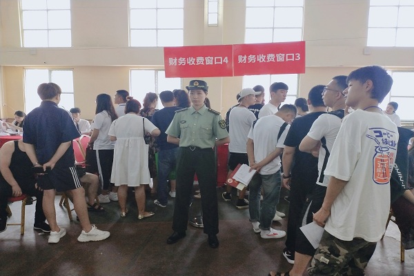 前来报到的新生和家长络绎不绝,礼仪生全程陪同,并为学生和家长做详细的讲解。新生资格审核、缴纳学费、校园一卡通办理、系里报到、签订协议、行李备品领取、寝室入住、银行卡办理……每个环节无缝衔接,高效的办理流程让学生和家长的报到顺心顺利,家长对学校周到、细致、贴心的服务感觉很贴心。