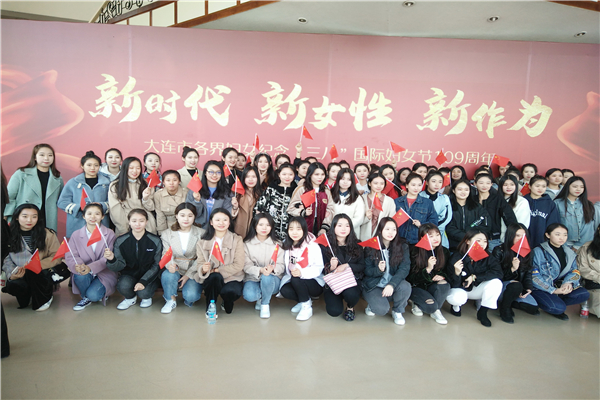 2019年3月8日,我院百名女同学代表大连市女大学生参加了大连市各界妇女纪念“三八”国际妇女节109周年暨新中国成立70周年主题活动。伴着和煦的春风和温暖的朝阳,同学们怀着激动的心情来到大连市青少年宫影剧院,会场气氛庄严神圣,来自全市各界妇女代表齐聚一堂,共同见证这份荣耀和辉煌。