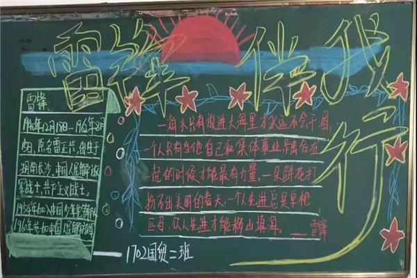 中职部各班级以“雷锋精神,有我传承”为主题开展了板报设计大赛。同学们精心设计的板报主题鲜明、布局美观、图文并茂,内容涉及雷锋生平、雷锋日记、雷锋语录、雷锋事迹等。多角度诠释了雷锋精神的内涵,引导学生人人学雷锋,人人当雷锋。