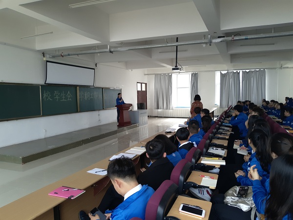 2018年3月21日中午12:00,校学生会学期工作大会在2号教学楼西多媒体顺利召开,会议由学生会主席刘祉璠主持。校学生会全体成员服装整齐,认真记录,以良好的精神面貌迎接新学期的到来。