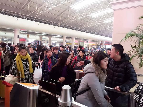 火车站的工作人员为同学们开辟了专属通道