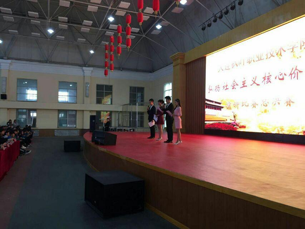 2015年10月22日下午,社会主义核心价值观演讲比赛总决赛在综合馆隆重召开。两千余名师生汇聚于此,共同见证所有参赛选手的风采。总决赛的评委阵容相当有实力,他们是:就业指导中心主任张晓洁、高教研室主任高晓梅、学生处处长助理吕运福、党办主任聂俭丽、基础部主任张淑萍、语文教师王俊华、学生处干事牟海璐、团委书记成名。