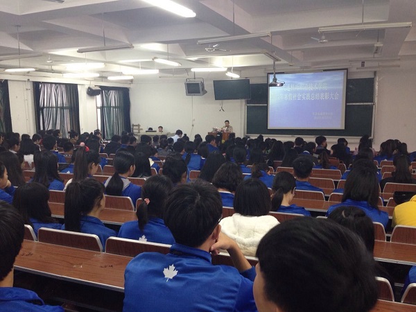 金秋送爽,硕果飘香,2015年10月21日,在2号教学楼隆重举行大连枫叶职业技术学院2014年寒假社会实践总结表彰大会。莅临本次大会的领导和嘉宾有:大连泰格海事服务有限公司总经理助理王女士,大连美格文化传播有限公司邹老师,学生处处长高成林,就业指导中心主任张晓洁,船舶与珠宝系主任王晓琳,本次大会由院团委书记成名主持。到场的还有此次社会实践的优秀个人和14、15级邮轮、酒店管理、旅游管理、人力资源的同学们。