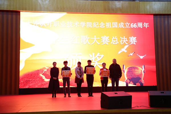回眸过去我们感慨万千激情澎湃,展望未来我们踌躇满志豪情满怀。红歌声声召唤着尘封的记忆,声声红歌引领者奋进的方向,闭着眼我们看见的是往昔,睁开眼幕幕美好慢慢浮现。今天我们满载喜悦在这里欢唱,明天我们肩负着新的使命扬帆起航。大连枫叶职业技术学院纪念祖国成立66周年大学生红歌大赛总决赛圆满落幕,希望同学们满载着爱国、爱校、爱家的情怀,放飞梦想,走向更加美好的明天!