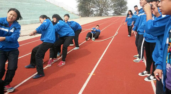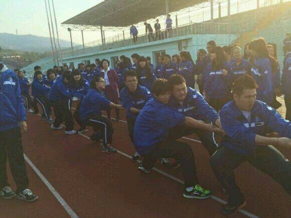 2014年9月24日—10月8日,我校14级新生在校足球场举行了“阳光运动行,健康我参与”拔河比赛。本次大赛以促进班级间交流、拥抱健康生活为宗旨,丰富学生们的校园生活为目的,以比赛的形式为学生们提供展现集体风采的舞台,通过拔河比赛发扬团队精神,增强凝聚力。全体同学纷纷以极大的热情参与到此活动中。