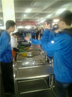 接下来小记者采访了一位勤工俭学的同学,他对记者说,“一方面是为了锻炼一下自己的自立能力,另一部分还可以贴补家用,减轻家里的负担,父母赚钱都不容易,能省一点是一点。”同时,我们还采访了一个食堂的档口老板,老板说:“为了让同学们吃的更加营养科学,更受同学们的欢迎,他们专门制定了荤素搭配的饮食方案,同学们吃得开心,工作起来也有动力。”