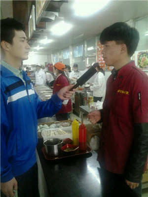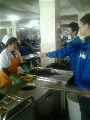 记者走进食堂采访
