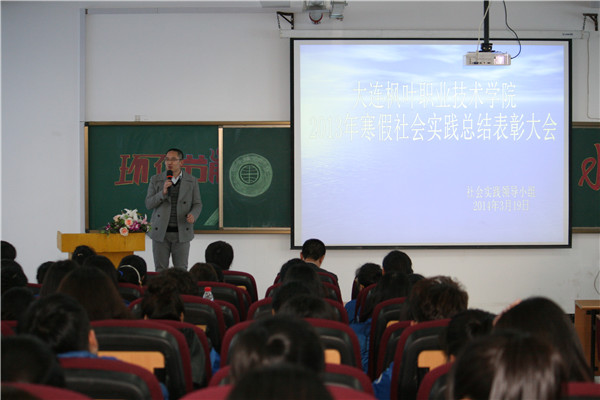 春回大地,万物复苏,在这春光明媚充满希望的大好时节我院2013年大学生寒假社会实践活动已圆满落下帷幕。2014年3月19日,我们欢聚一堂,在教学楼西多媒体隆重举行我学院2013年寒假社会实践总结表彰大会。上海莱特浩斯企业管理咨询有限公司人力资源总监叶晓明先生,经理曾祥栓先生,党支部书记、副院长申秀梅,学生处长高成林,就业指导中心主任张晓洁,船舶与计算机系、珠宝与国际教育学院主任王晓琳,通关系副主任徐凤龙,系团委书记隋新、赵坤莅临大会现场,到场的还有此次社会实践的优秀个人和13级新生代表,校团委书记成名主持会议。
