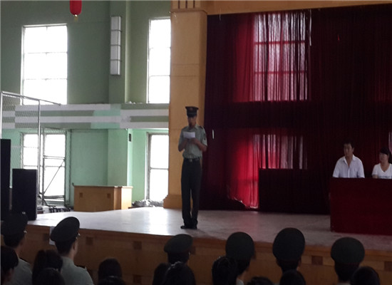 军训是同学们接受素质教育的良好形式。它能够激发和培养我们的团队精神、集体意识和艰苦奋斗、吃苦耐劳的品质。通过军训,将使学生们更好地领悟纪律的含义、规范的意义,领悟生活的真谛、生命的价值,使学生们在思想认识和行为方式等方面再上一个新台阶。申院长对全体参训新生提出希望和要求,希望同学们发扬不怕苦、不怕累的军人的品质,加强组织纪律性,尊重教官、服从命令。在军训中塑造良好的身体素质,养成良好的行为习惯,在十二天的军训时间中展示枫叶新生的风采。教官代表向在场所有新生提出了军训要求,希望大家通过严格自觉的训练,去细心体验军人的甘苦,团结协作,顽强拼搏。学生代表在发言中表示将牢记在军训中“我是一个兵”的信念,用刚毅代替幼稚,用坚强战胜懦弱,用自立取代依赖,做一名合格的枫叶学子。