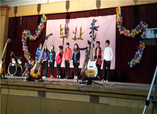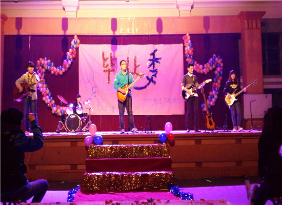 2013年12月18日星期三,夜幕降临或许在很多人看来,只是一个很平常的日子,天气的一成不变,就像生活一样平淡无奇,但是对于大连枫叶的学生们,却是一个十分不寻常的夜晚,由校广播电台主办的毕业季sin乐队演唱会在综合馆拉开了序幕,一场激情四射的演唱会正在如火如荼的展开。