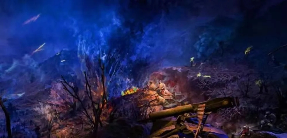 为了表现战役的惨烈,新馆在展陈中充分考虑文物与场景的融合,不仅复原了上甘岭阵地的实景,还将上甘岭阵地上的炸弹片、嵌有弹片的树木以及上甘岭上阵地上夹杂着弹头与弹片的碎石与岩石粉末等文物融入场景,让观众身临其境,感受战争的残酷。