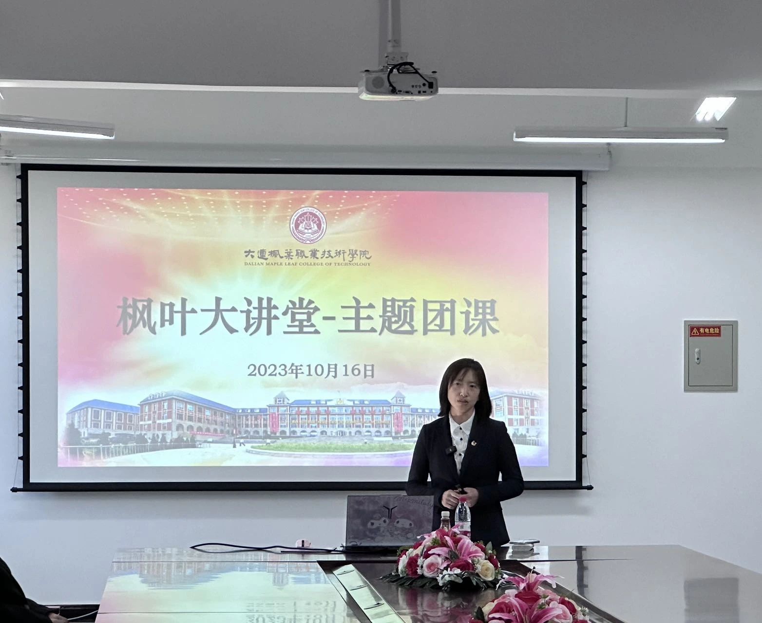 为深入学习贯彻党的二十大精神,坚定理想信念,勇担时代重任,落实市委市政府关于“爱连兴连”教育相关要求,10月16日下午,我院开展了“青春心向党、奋进新征程”枫叶大讲堂-主题团课活动。活动邀请了马克思主义学院习近平新时代中国特色社会主义思想教研室教师、辽宁省共青团青年教师宣讲团成员赵姝婕教授进行授课。