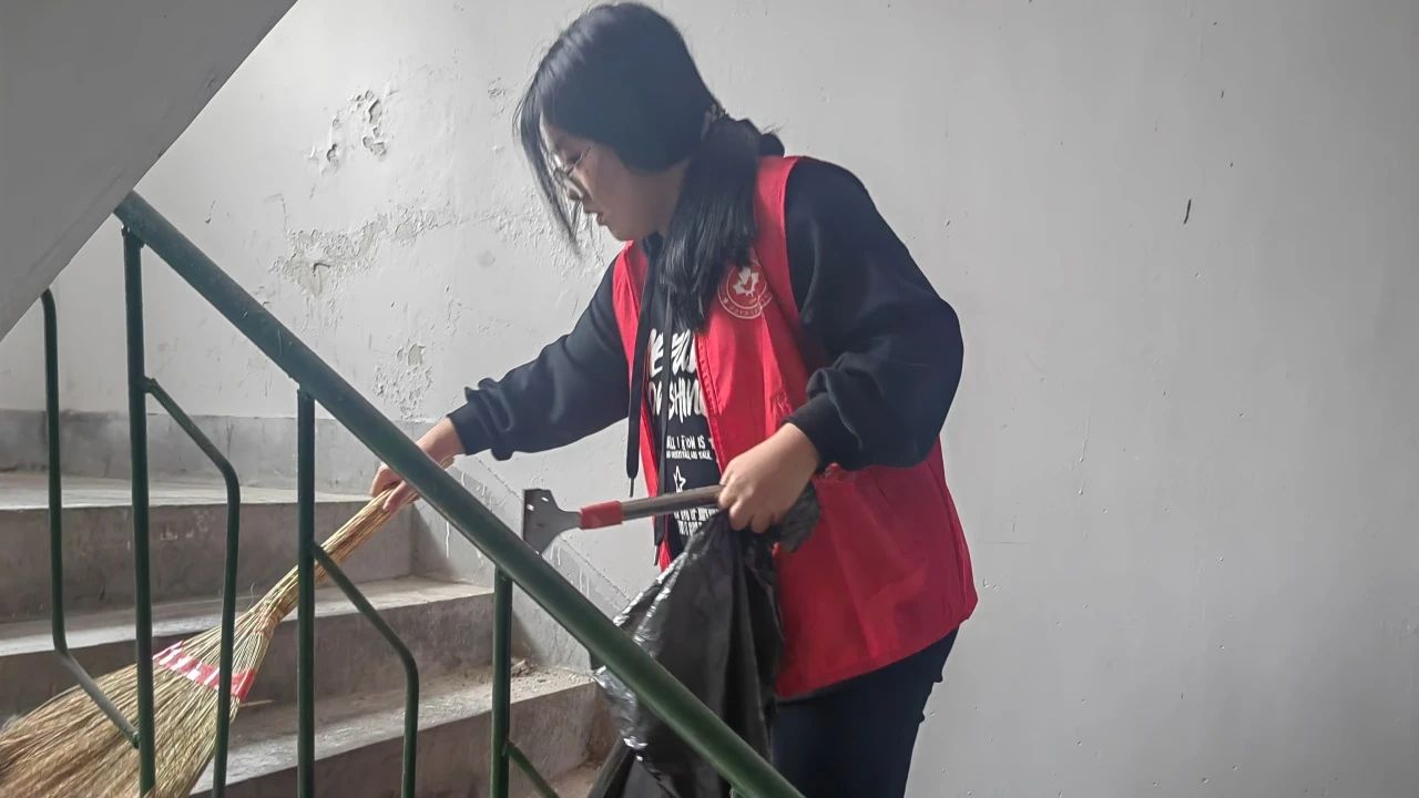在清扫过程中,志愿者们发挥着不怕脏、不怕累的精神,用实际行动诠释着青春的担当。参与活动的同学表示:“参与这次社区活动,不仅能为居民们创造更好的生活环境,也让我们有机会走出校园,锻炼自己,增强社会责任感。”社区工作人员对学生们的表现也给予了高度评价,社区书记李亭亭说:“这些年轻人给我们社区带来了活力和新的力量,他们认真负责的态度让我们非常感动。”